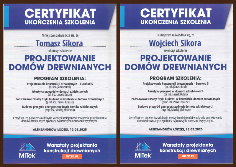Nieustannie poszerzamy naszą wiedzę i uczestniczymy w licznych szkoleniach takich to niedawne, z zakresu projektowania domów drewnianych.